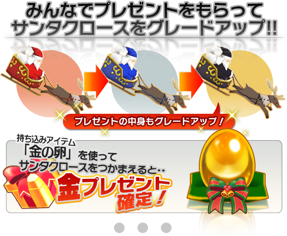 持ち込みアイテム「金の卵」を使うとサンタクロースの落とすプレゼントが必ず金のプレゼントになります。