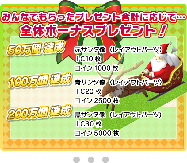 特効効果付き運転カードをデッキにセットしているととサンタクロースの落とすプレゼントボックスの数が増えます。