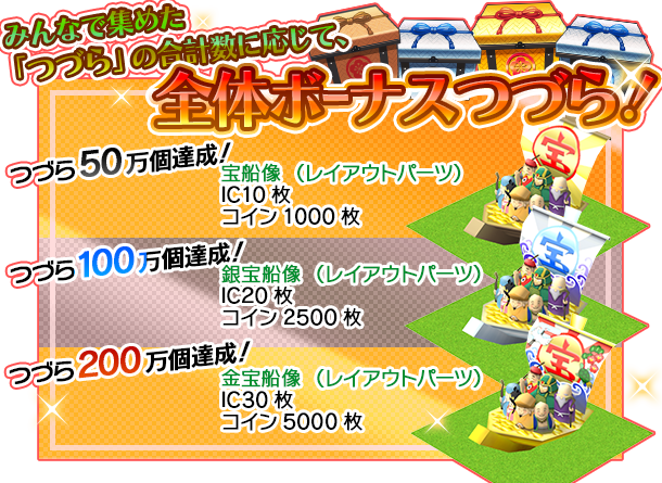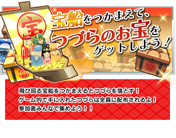 特効効果付き運転カードをデッキにセットしているとと宝船の落とすつづらの数が増えます。